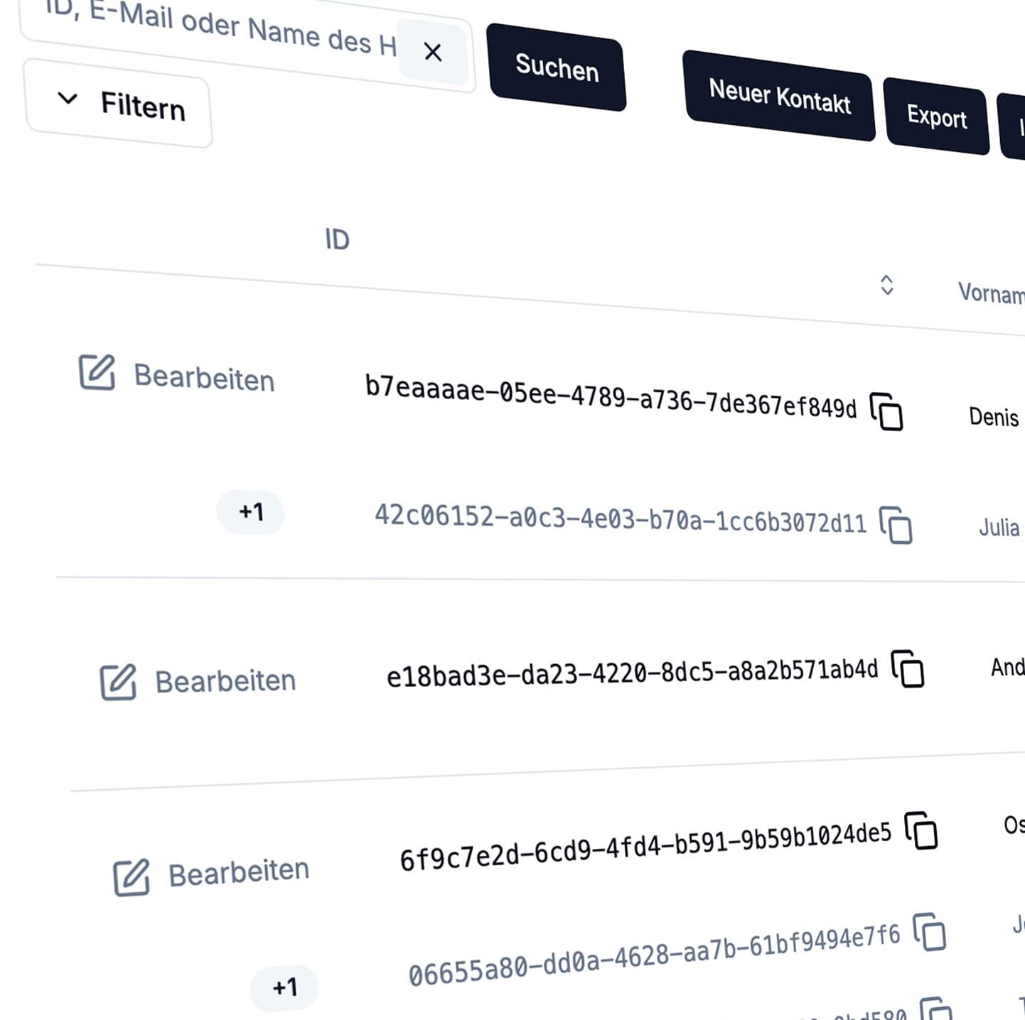 Verwalte Deine Gäste mühelos. Importiere, exportiere und segmentiere Deine Kontakte und deren Begleitungen mit Leichtigkeit. Erstelle individuelle Gästeprofile mit einstellbaren Kontakteigenschften.